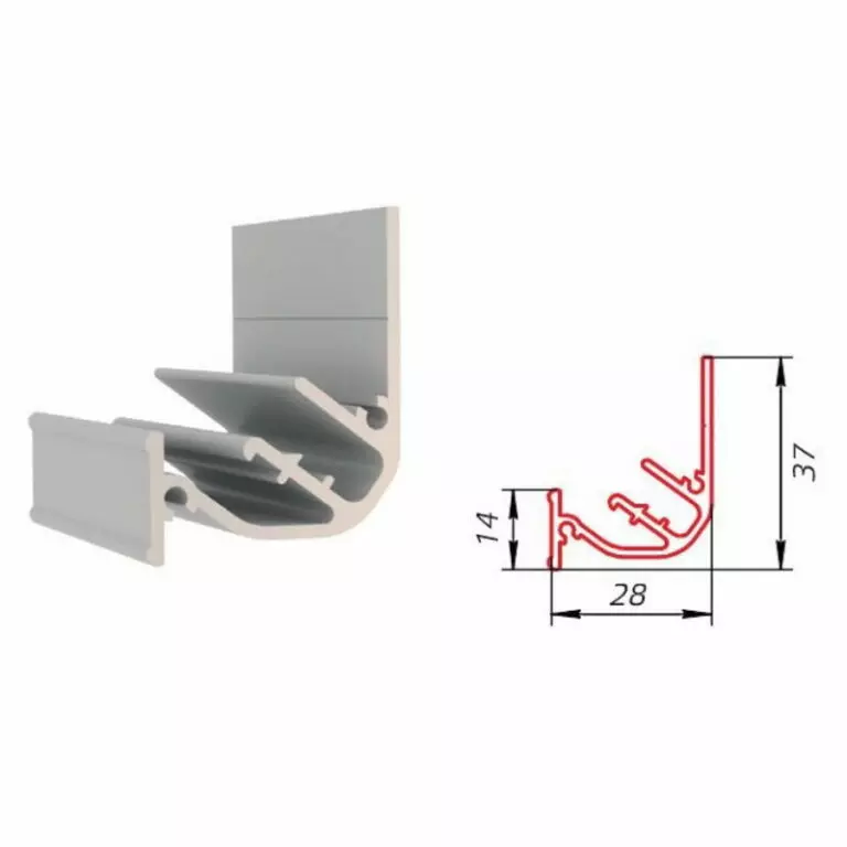 Профиль с бесщелевым переходом высотой 14 мм. Совместно с профилем КП2 от Prozet позволяет смонтировать световые короба различной конфигурации или световые линии.